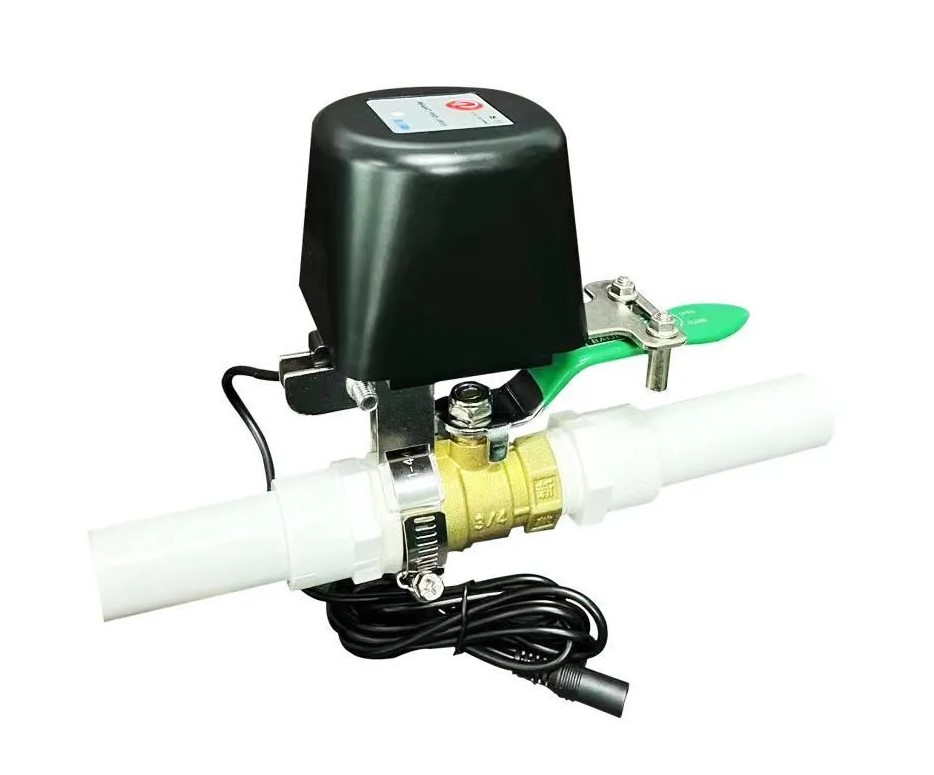 Нашел еще интересное устройство - электропривод шарового крана на zigbee. Дорогая штука, но если вы деньги не считаете то это будет отличное решение. Просто цепляется за трубу хомутом а саму ручку крана в механизм, поварачивает ручку крана по сигналу. Вот фото, это просто механизм без zigbee, но есть уже готовые iot электроприводы. И как я уже сказал, есть готовые iot шаровые краны с zigbee, ну и wi-fi или Lora кому что нравится.